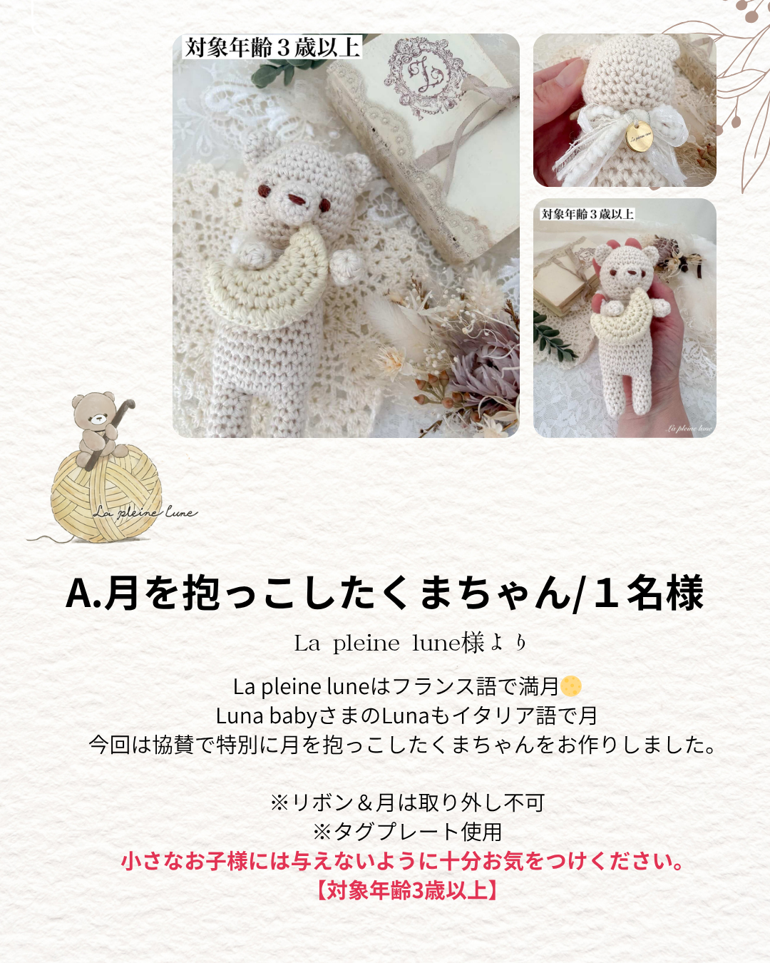 今回は協賛で特別に月を抱っこしたくまちゃんをお作りしました。