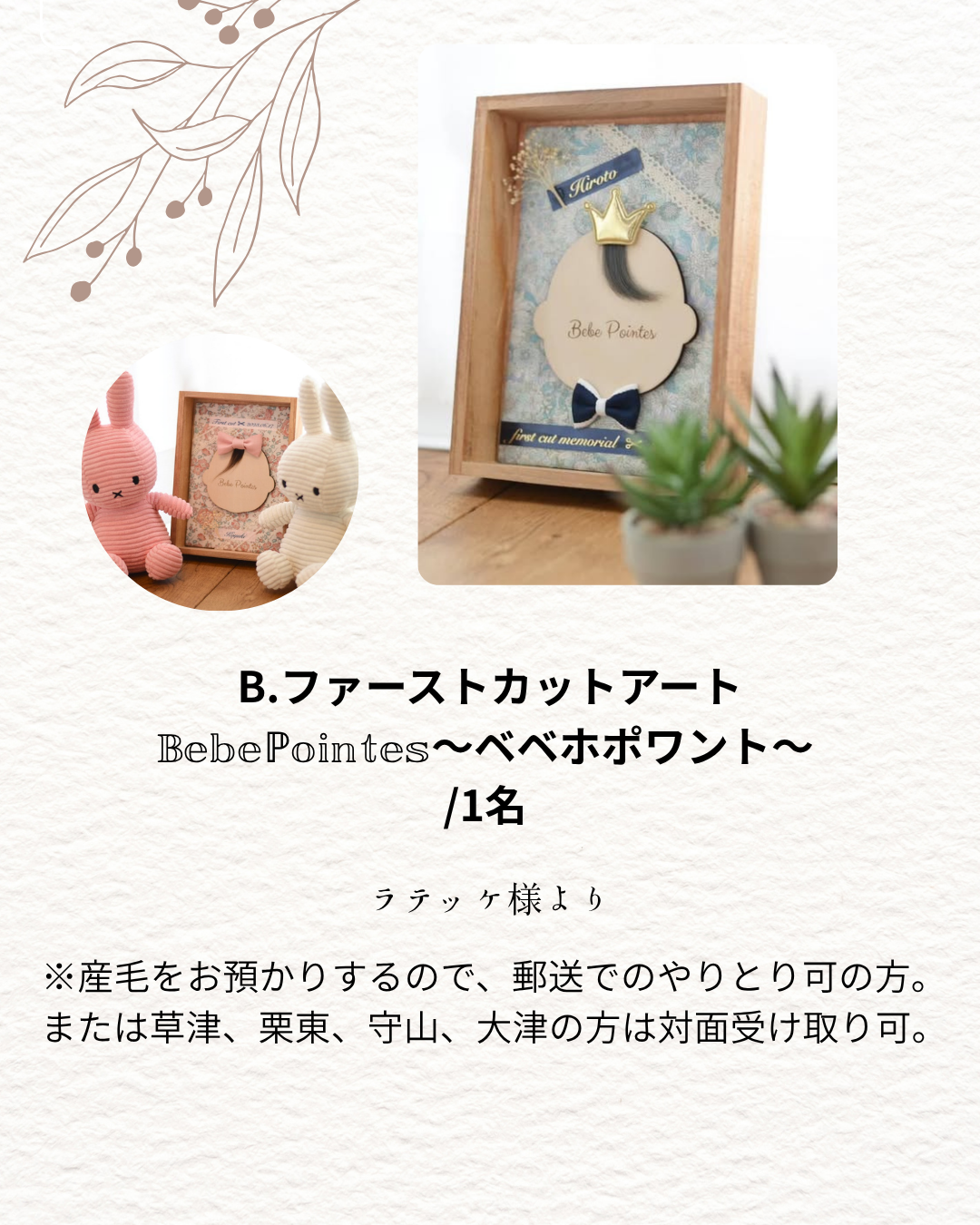 ※産毛をお預かりするので、郵送でのやりとり可の方。または草津、栗東、守山、大津の方は対面受け取り可。