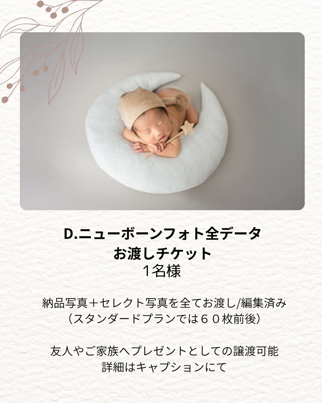 D:ニューボーンフォト全データお渡しチケット/1名様