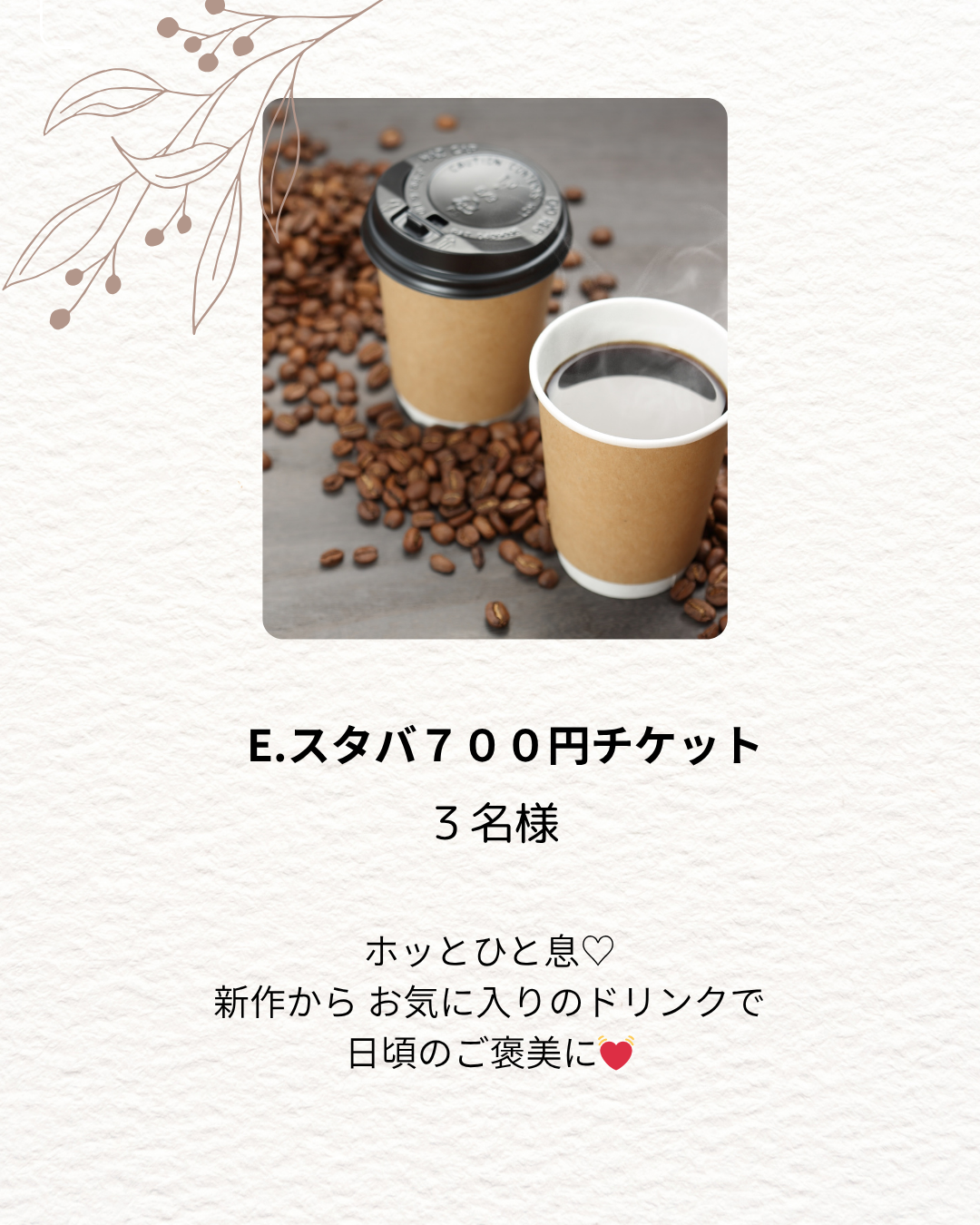 E:スタバドリンクチケット 700円分/3名様